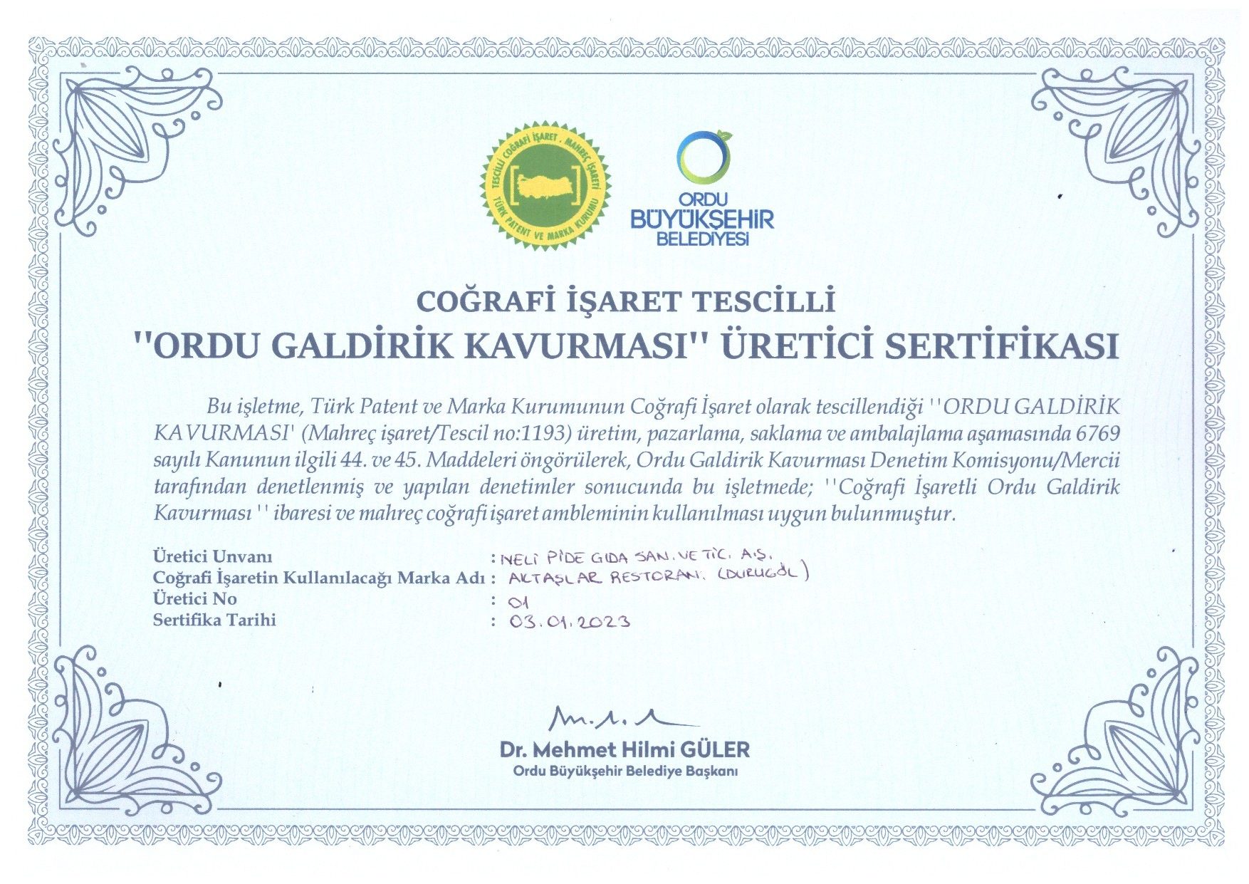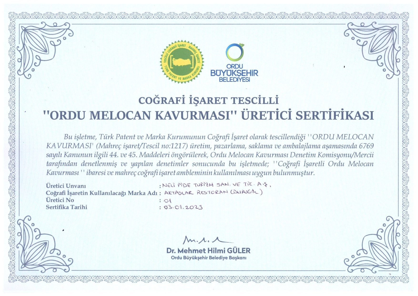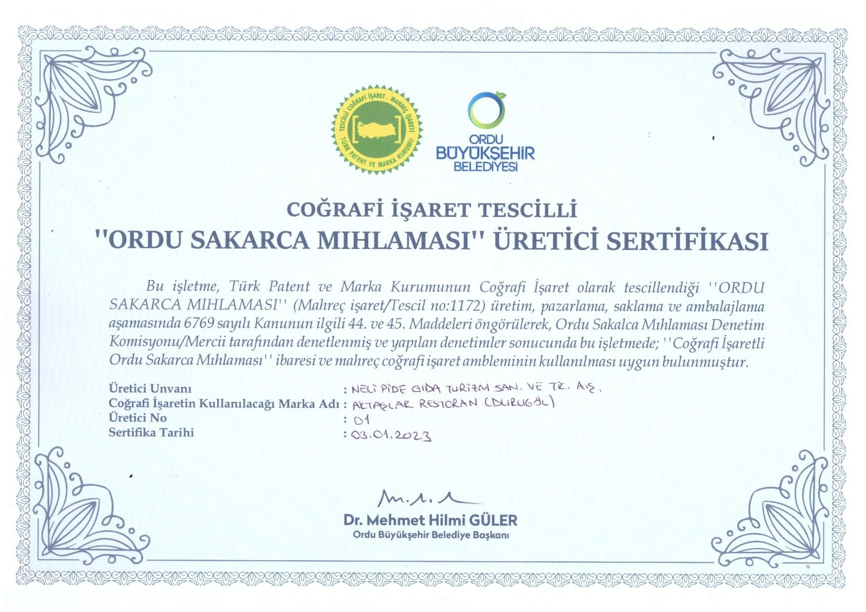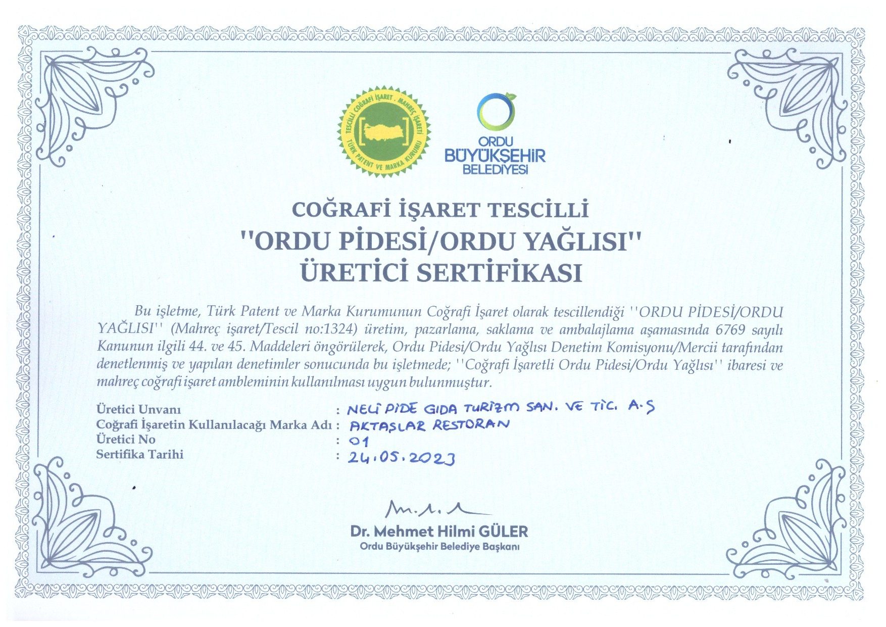 Bu belgeler; ürünlerimizin kökenine, kalitesine ve geleneksel üretim anlayışımıza olan bağlılığımızın göstergesidir.